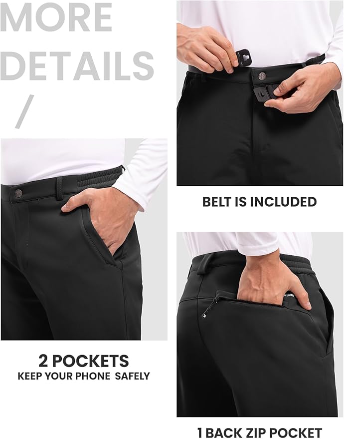 TBMPOY Men's Snow Ski Hiking Pants Waterproof Winter Fleece Lined Pants Camping Skiing Ice Fishing Pants with Belt