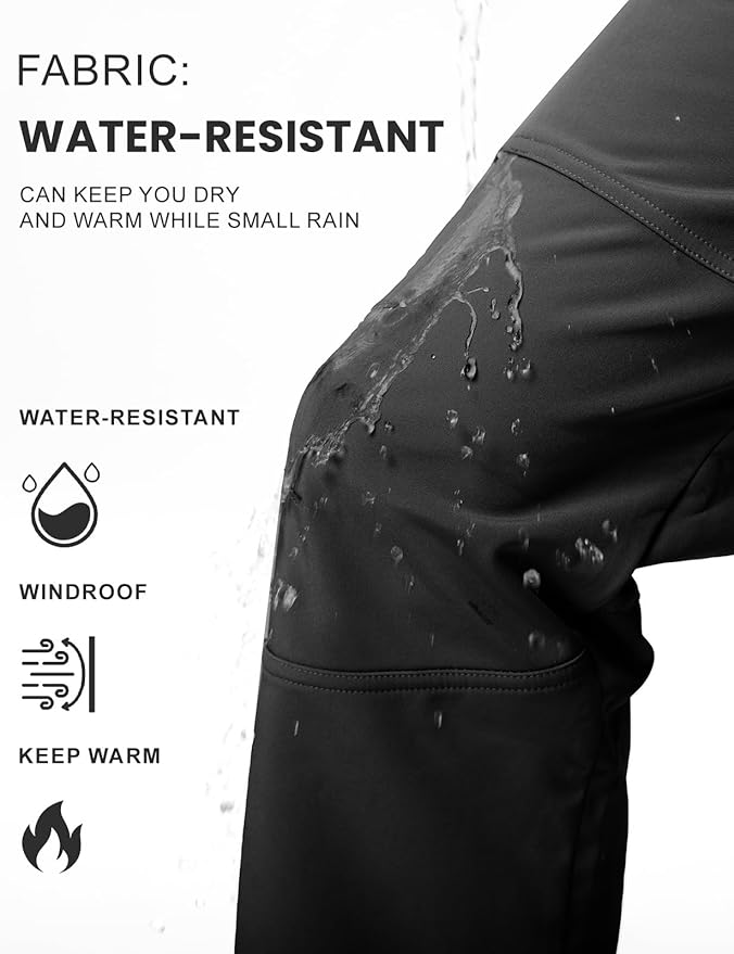 - Windproof winter pants with fleece lining, keeps you warm and dry in the cold and windy weather. Or you can put on another layer for added warmth