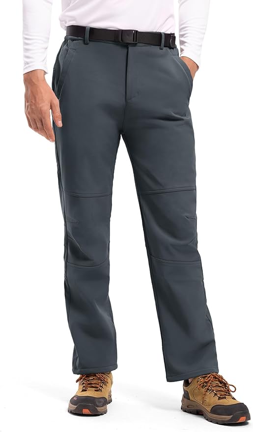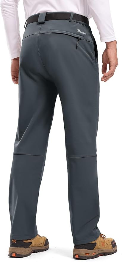 TBMPOY Men's Snow Ski Hiking Pants Waterproof Winter Fleece Lined Pants Camping Skiing Ice Fishing Pants with Belt
