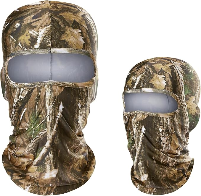 - Hunting Essential: Optimized for camo face mask for hunting—blend seamlessly into forests or brush with its realistic camouflage print. Shields your face from wind, cold, and UV rays while staying silent and scent-neutral.