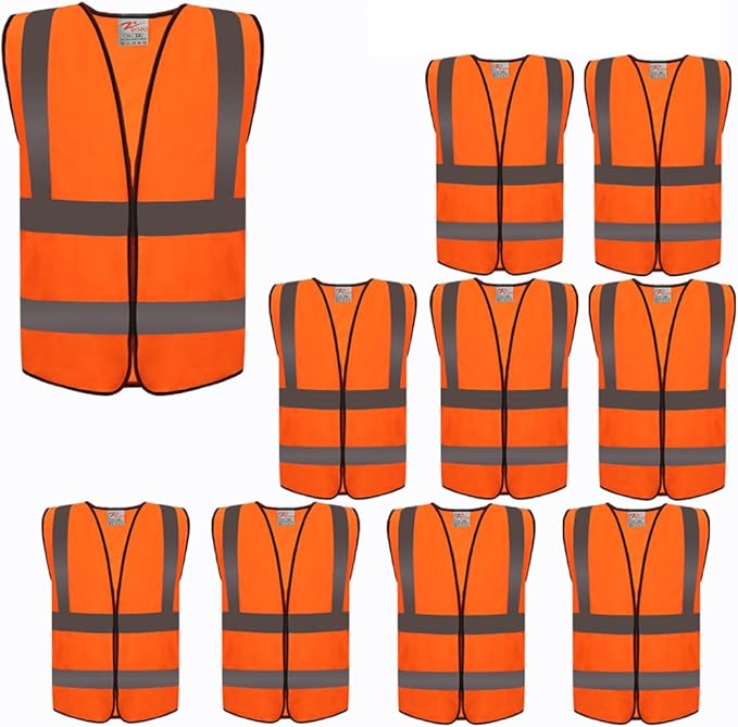 - HIGH VISIBILITY AND REFLECTIVITY: Made From Ultra Lightweight and Comfortable Mesh Fabric And 2” Width Reflective Strips on Both Front and Back, Our Safety Vests makes you Visible in traffic from 1000 feets by day and night.