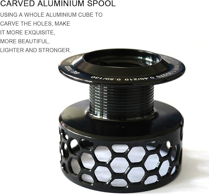 - Lightweight – CNC (Computer Numerical Control) machined aluminum spool with Carved Honeycomb Hole. Thanks to the relatively narrow hollow graphite body and the lightweight reel gears, the Fishdrops spinning reels light to 7.5oz.