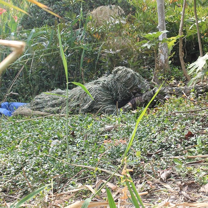 - One Size Fits All: Designed to accommodate most body types, this ghillie poncho is spacious enough to cover you and your backpack. Easy to put on and take off, it ensures a quick setup for your outdoor adventures. Whether you're hunting, birdwatching, or engaging in tactical games, this poncho offers the flexibility and coverage you need for effective camouflage.