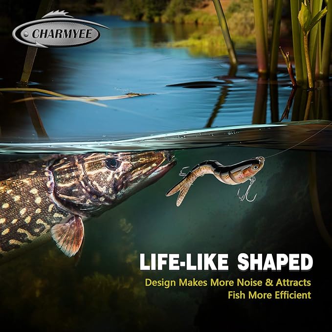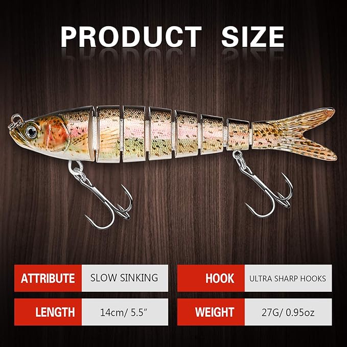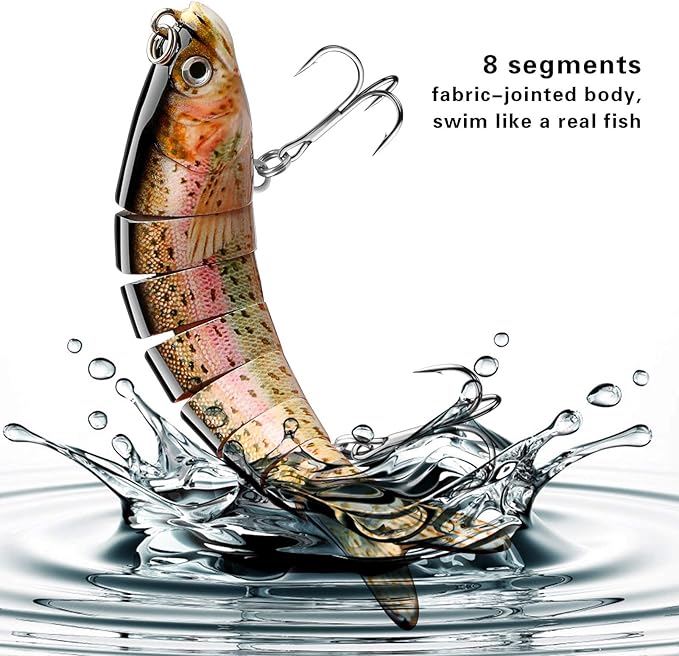 - 【8 Segment Lifelike Lures】--Designed with 8 segment multi-jointed body, this fishing lure kit can sink slowly and moves flexible in water. Besides, life-like swimming actions make it attracting more catches and provoking predator fish to strike