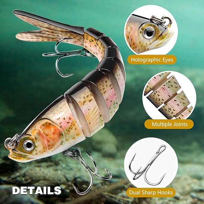 Bass Fishing Lure for Freshwater and Saltwater Lifelike Fishing Lures Multi Jointed Swimbait for Bass Trout Crappie Walleye Pike Fishing Gifts for Men