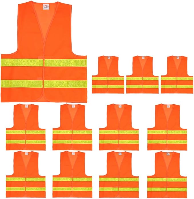 zojo Normal Visibility Safety Vests,12 Pack,Adjustable Size,Thin & Lightweight Mesh Fabric, Wholesale Safety Vest for Outdoor Works, Fits for Men Neon Orange Updated