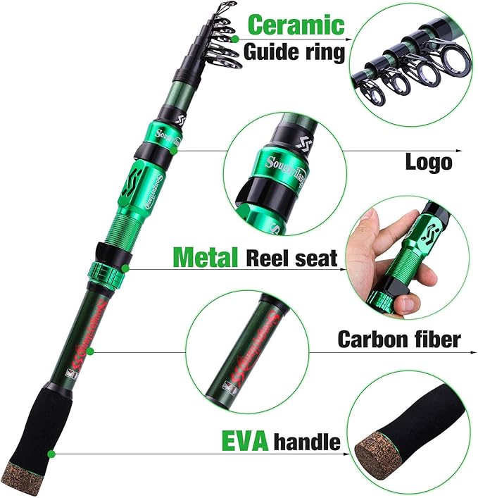 Sougayilang Telescopic Fishing Rod - 24 Ton Carbon Fiber,CNC Machined Reel Seat, Comfortable EVA Handle, Travel Fishing Rod for Bass Trout Fishing