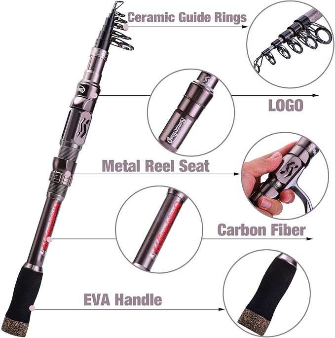 Sougayilang Telescopic Fishing Rod - 24 Ton Carbon Fiber,CNC Machined Reel Seat, Comfortable EVA Handle, Travel Fishing Rod for Bass Trout Fishing
