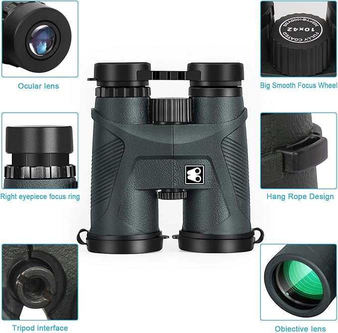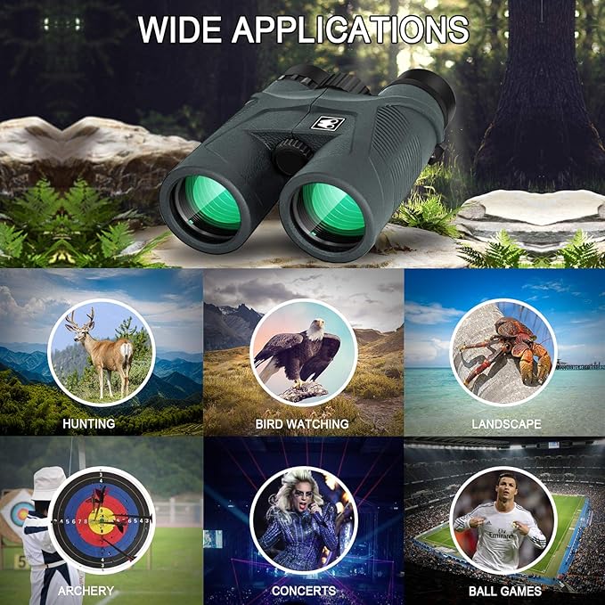 - 【Designed for outdoors】: Powerful 10X magnification and 371ft/1000yds large field of view is especially perfect for outdoor activities such as climbing, hiking, driving, watching wildlife and scenery, and also great for watching large stage play, vocal concert, a football game, etc.