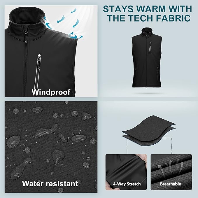 • WINDPROOF & LIGHTWEIGHT: This 33,000ft softshell vest is crafted with windproof lightweight fabric that keeps you warm and dry.