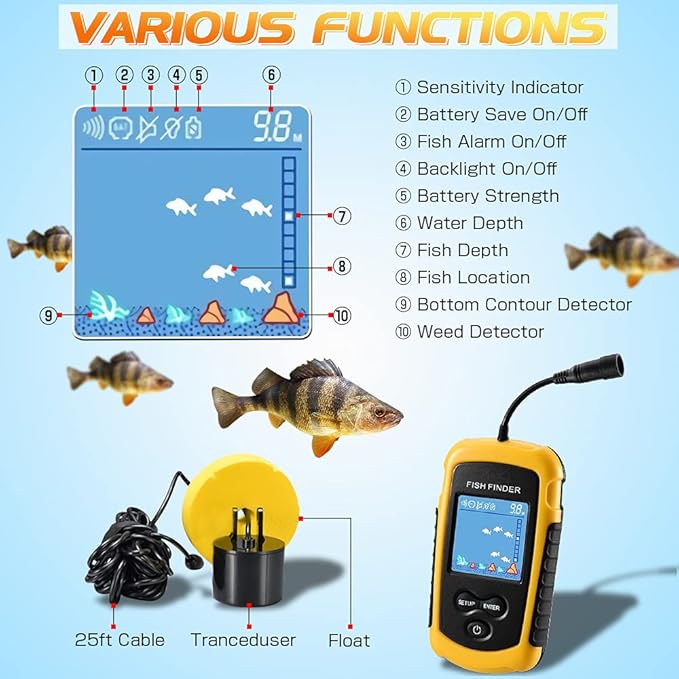 - ✫Fishing Gift & Fishing Gadget : Depth fish finder is a helpful fishing gadget in lake fishing or dock fishing. Meanwhile, if you are looking a gift for fish men, it is a now better choice than ever. These portable fish finders can be given as a gift on Christmas, New Year, Thanksgiving, Valentine’s Day, birthdays, Father’s Day or Mother’s Day.