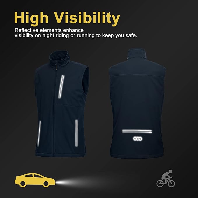 • RUNNING VEST FOR MEN WITH REFLECTIVE FEATURES- Thereโ€™s a stand neck collar with a wind guard under the zipper, drawcord hem that help seal out the elements and adjust the fit. It comes with pretty colors with reflective contrast piping that provides high visibility when running at dark.