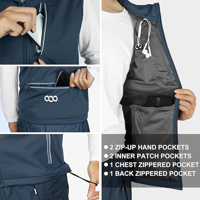 33,000ft Men's Windproof Lightweight Golf Vest Outerwear with Pockets, Softshell Sleeveless Jacket for Running Hiking Sports