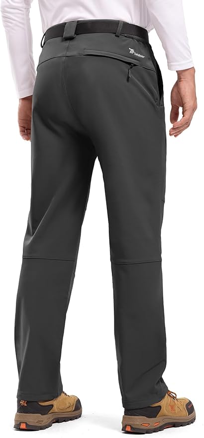 TBMPOY Men's Snow Ski Hiking Pants Waterproof Winter Fleece Lined Pants Camping Skiing Ice Fishing Pants with Belt