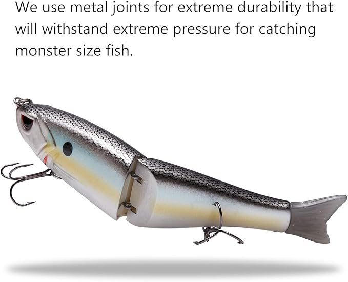 - The hard swimbaits made of heavy duty ABS material can withstand the wear and tear from fighting fish; Metal Joints for extreme durability that will withstand pressure for catching monster size fish