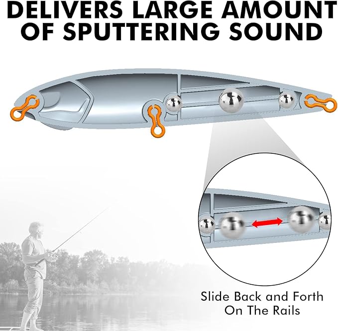 - Rear-Weighted Design - The popper baits possess precise weights within the tail section, produces potent action, delivers long and bullet-like casts even when fishing in windy conditions.It makes walking the dog effortless and allows the lure to sit tail-down for a splashing, popping action that predator fish can't resist.