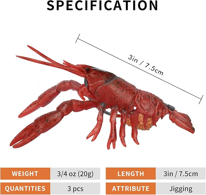 - Excellent Designs Presents Real Meaty Crawfish: The hallow body can carry the scents and sink naturally for better visibility for fish; The weedless guard VMC sharp Hook with the UV properties prism egg sac imitate the real crawfish; One pair lifelie pincers create soft turbulence along its path when sinking and float up when sitting on the bottom. All components are manfuactured with first class hand craftmanship.