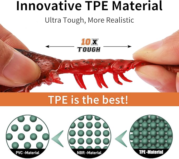- TPE Material for More Aggresive Bites: Comaring to the traditional PVC material, Truscend TPE formula present the more springy and meaty fishing lures set, which are super appealling for bass trout walleye predator