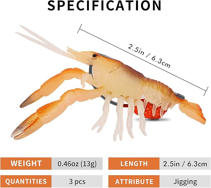 - Excellent Designs Presents Real Meaty Crawfish: The hallow body can carry the scents and sink naturally for better visibility for fish; The weedless guard VMC sharp Hook with the UV properties prism egg sac imitate the real crawfish; One pair lifelie pincers create soft turbulence along its path when sinking and float up when sitting on the bottom. All components are manfuactured with first class hand craftmanship.
