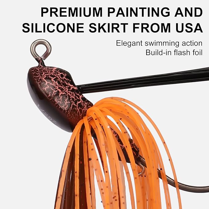 - ULTRA-SHARP BKK HOOK - The bass lures are rigged with BKK ultra-smooth hook with Teflon super-smooth coating, which have excellent anti-rust performance, sharp hook point and strong penetration. The hook of the fishing jigs feature low stabbing resistance and fast speed that is especially important for bass fishing.