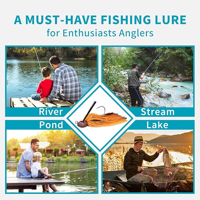 - LIVELY & VIVID SKIRTED BASS JIG - To mesmerize bass with flowing movement, the freshwater bass jigs fishing lures finished with a muti-color silicone skirt with flash foil for lively action, which keeps good expansion in the water, produces extra realistic subtle movements and contours even without moving the lure. Plus, we equip the swim jigs with different colors for use in different waters.