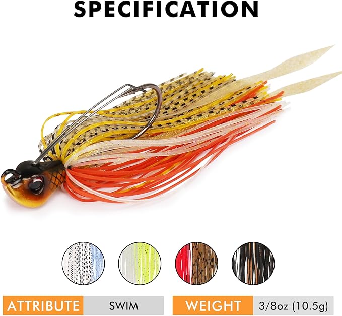 - ULTRA-SHARP BKK HOOK - The bass lures are rigged with BKK ultra-sharp hook with Teflon super-smooth coating, which have excellent anti-rust performance, sharp hook point and strong penetration. The hook of the swim jigs feature low stabbing resistance and fast speed that is especially important for bass fishing.