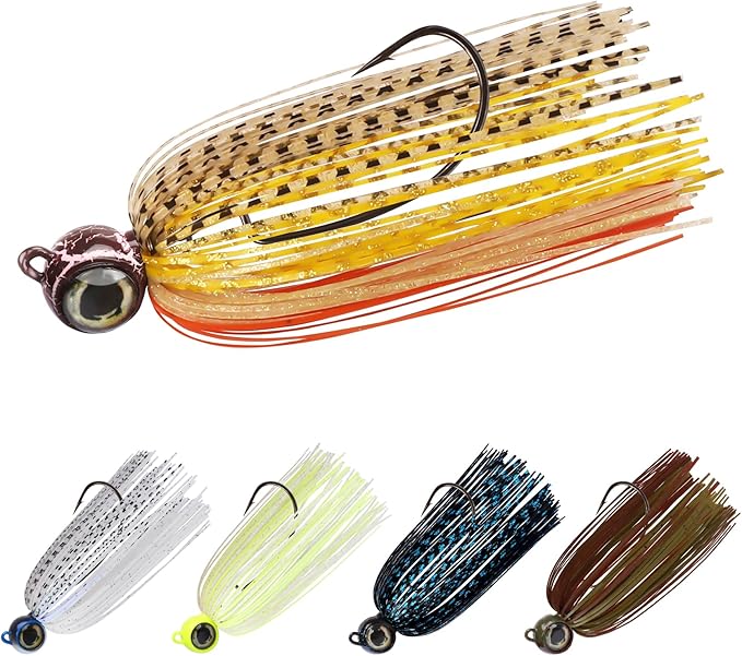 - LIVELY & VIVID SKIRTED BASS JIG - To mesmerize bass with flowing movement, the fishing lures for freshwater finished with a muti-color silicone skirt with flash foil for lively action, which keeps good expansion in the water, produces extra realistic subtle movements and contours even without moving the lure. Plus, we equip the swim jigs with different colors for use in different waters.
