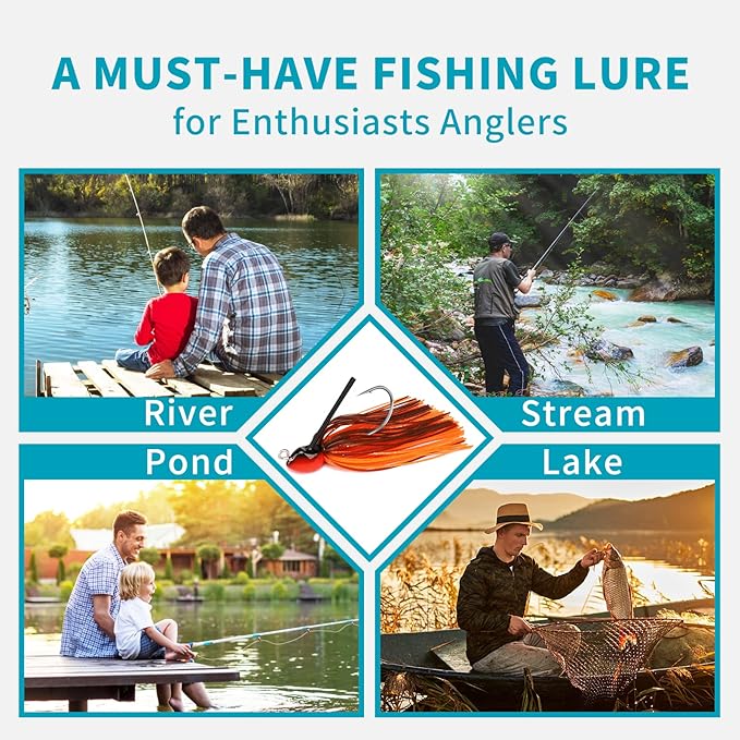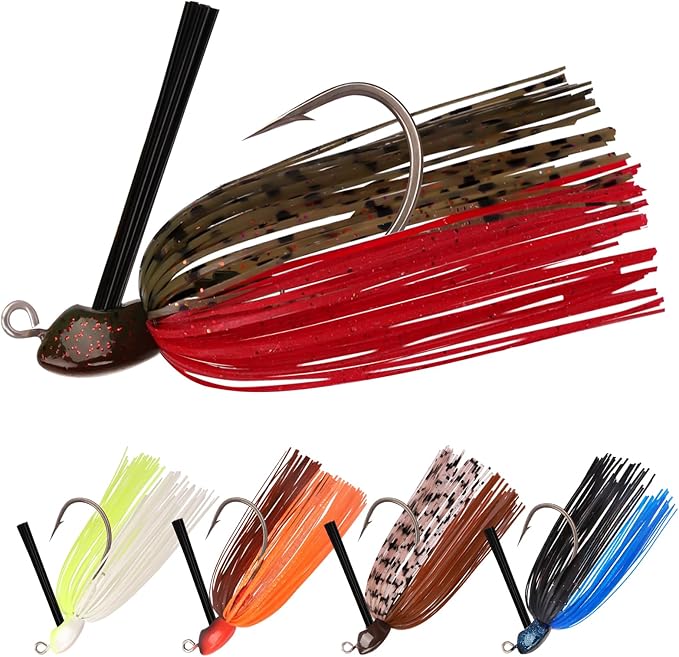 - LIVELY & VIVID SKIRTED BASS JIG - To mesmerize bass with flowing movement, the freshwater bass jigs fishing lures finished with a muti-color silicone skirt with flash foil for lively action, which keeps good expansion in the water, produces extra realistic subtle movements and contours even without moving the lure. Plus, we equip the swim jigs with different colors for use in different waters.