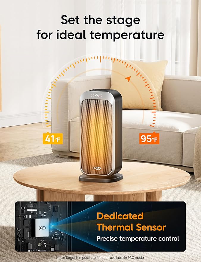 - Always at the Perfect Temperature: This heater for home with Thermostat allows you to set your desired heat level within a wide range of 41-95℉ with ±1℉ increments, ensuring precise and efficient heating. This feature not only keeps you comfortable but also helps save energy