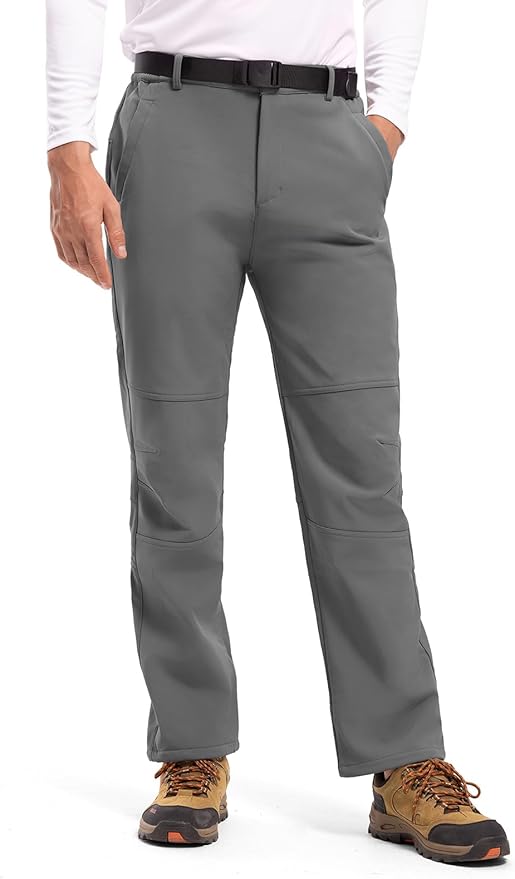 TBMPOY Men's Snow Ski Hiking Pants Waterproof Winter Fleece Lined Pants Camping Skiing Ice Fishing Pants with Belt