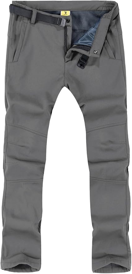 TBMPOY Men's Snow Ski Hiking Pants Waterproof Winter Fleece Lined Pants Camping Skiing Ice Fishing Pants with Belt