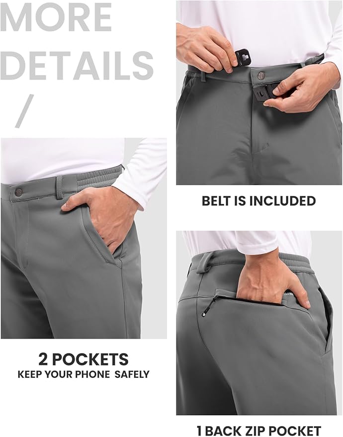 TBMPOY Men's Snow Ski Hiking Pants Waterproof Winter Fleece Lined Pants Camping Skiing Ice Fishing Pants with Belt