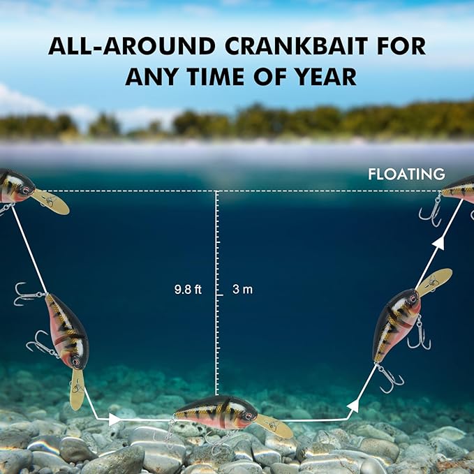 - Oscillating Stainless Steel Bill - TRUSCEND Super Crankbait is fitted with an oscillating stainless steel bill, as the bait effectively tunes itself on each cast. And the jowls embedded into the bait, which creates an aggressive hunting action with a clicking noise that is unlike anything the fish have seen before. This crankbait diving depth is 0-6.5ft.