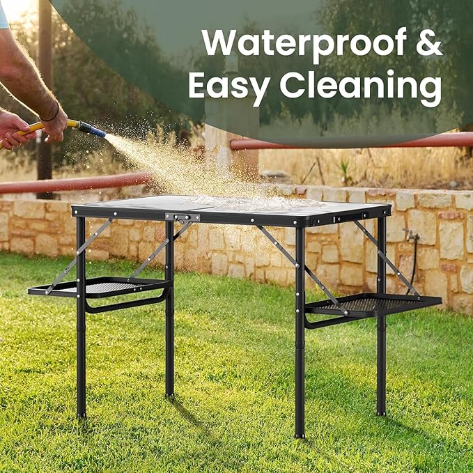 Titanker Folding Camping Table 3ft, Folding Picnic Table, Camp Tables Portable, 50% Extra Side Space, Outdoor Patio Table, RV/Car Camping Essentials, Aluminum Light & Solid