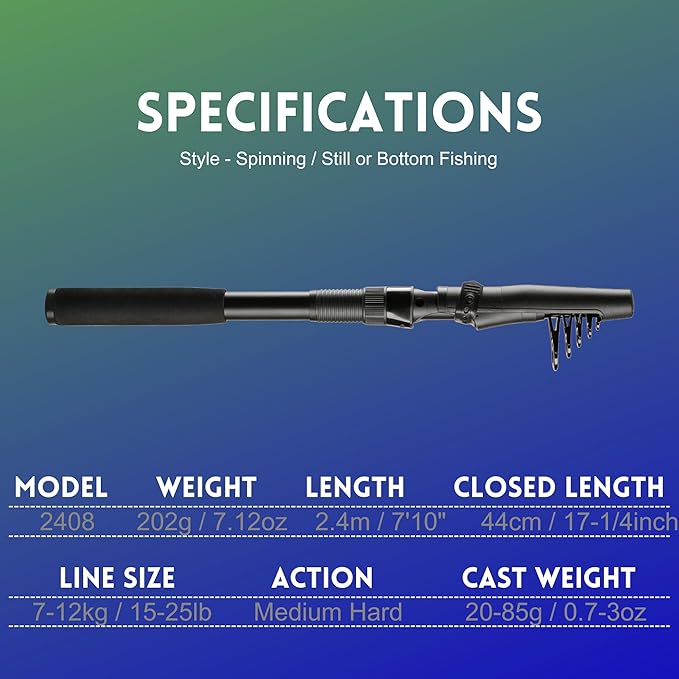 - Compact and Portable - Our Whistytwig Telescopic Fishing Rods are perfect for travel, easily fitting into your backpack or luggage for convenient fishing adventures anywhere. With a range of versatile retractable fishing poles for various styles of fishing these travel fishing rods are easy to store and pack.