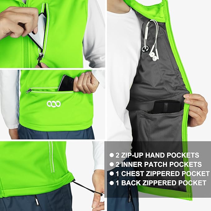 • RUNNING VEST FOR MEN WITH REFLECTIVE FEATURES- There's a stand neck collar with a wind guard under the zipper, drawcord hem that help seal out the elements and adjust the fit. It comes with pretty colors with reflective contrast piping that provides high visibility when running at dark.