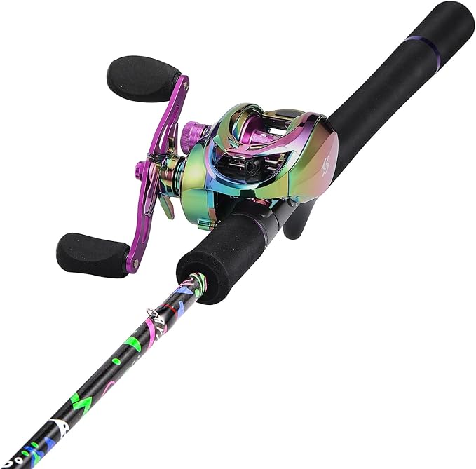 - Amazing Baitcasting Reel: Delivers a smooth fishing experience with a 6.5:1 gear ratio, simple magnetic braking system, equipped with 9+1 ball bearings and rear drag functions, offers durability and strength.