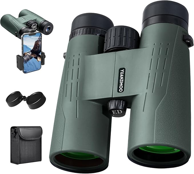 - 【LOW-NIGHT VISION BINOCULARS FOR BIRD WATCHING】Equipped with 42mm objective lenses, BAK4 prisms, and fully multi-coated optics, the 12x42 binoculars excel in low light. Perfect for dawn hunting or dusk birdwatching, they deliver bright, sharp images in any scenario
