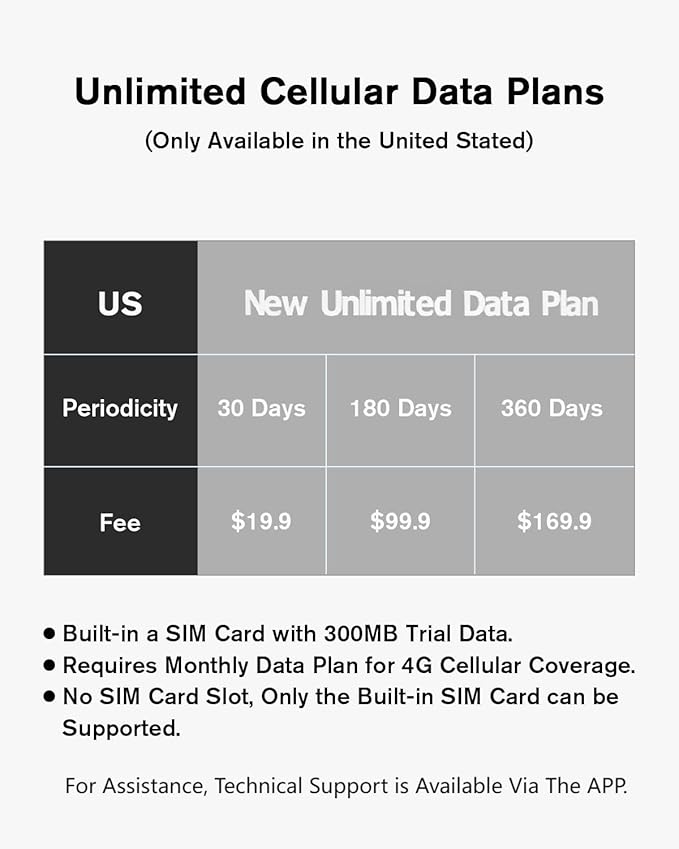 - 【4G LTE Connectivity & Buit-in SIM Card】The 4G trail camera requires a SIM card to connect to the 4G network and does not support WiFi connectivity. The built-in SIM card (NO SLOT) ensures stable signal reception. Additionally, it provides 300MB of data (valid for 30 days after activation; a subscription is required once the data allowance is exhausted). You can view live footage in real-time in areas without WiFi signals—ideal for wilderness use. The camera supports GPS positioning to locate the device, eliminating the need to spend extra time searching through forests.