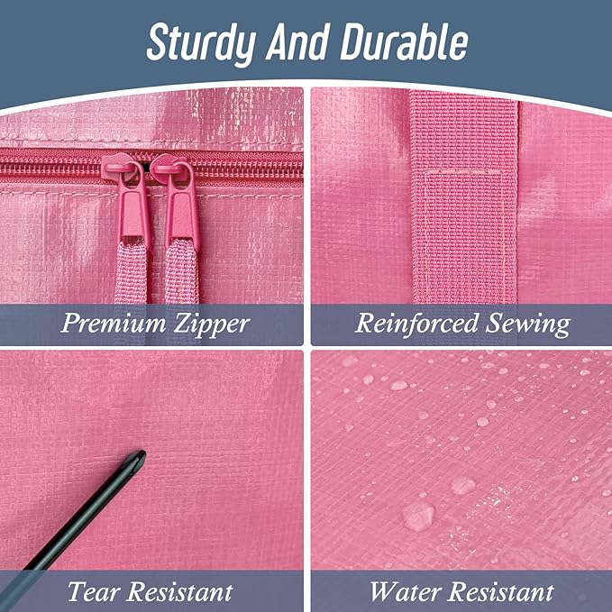 6 Pack Extra Heavy Duty Large Moving Bags with Strong Zipper & Comfortable Handles, Sturdy & Durable Clothes Storage Bags Totes Bins, Packing Moving Boxes for College Supplies, Pink