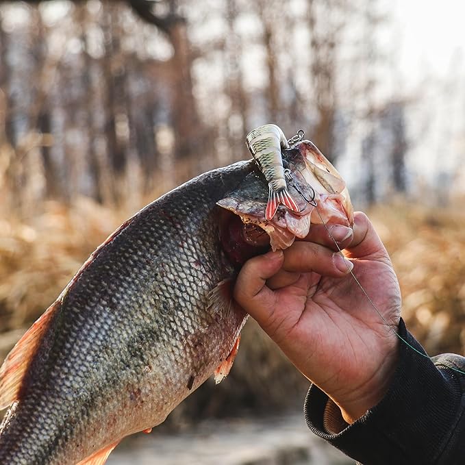 - Realistic Swimming Action to Fool Fish: Designed with multi-jointed flexibility, this swimbait fishing lure mimics the natural movement of real prey in both saltwater and freshwater. Its lifelike swimming action attracts a variety of fish species, making it a top choice for anglers seeking effective swim baits for bass fishing, trout, pike, and more.