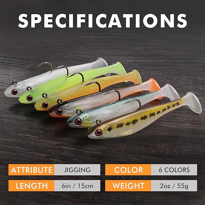 - LONG CASTING JIG HEAD - Having an ideal weight for long casting and slow sinking, Truscend fishing bait can achieve a slow, flutter presentation. Featuring a precisely engineered shape, the soft body swimbaits generate the perfect kicking action. You can easily cast the fishing jigs bait into your ideal fish area.