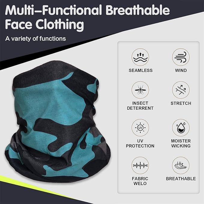 - Multi-Functional Neck Gaiter: The neck gaiter is a versatile outdoor accessory suitable for various scenarios.It can not only be used as a neck warmer but also serves as a face mask, headband, or wristband.Its lightweight design and breathable material make it an ideal choice for activities like cycling,running,and skiing, providing protection against wind,dust,and sun.Whether for daily use or outdoor adventures,the neck gaiter meets all your needs.
