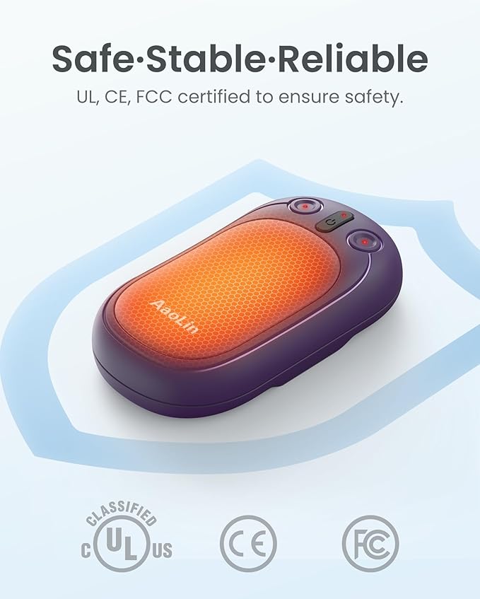 AI Hand Warmers Rechargeable, AaoLin 2 Pack Electric Hand Warmers Reusable, 12Hrs Long Heating, Portable Pocket Handwarmer Great Gift for Outdoors, Camping, Golf, Hunting Gear