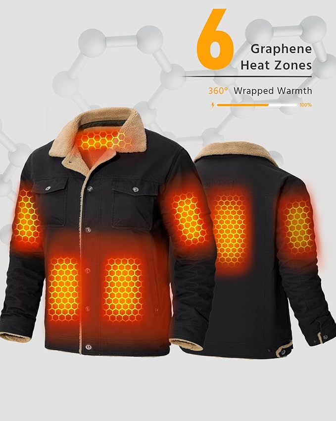 Wulcea Graphene Heated Jacket for Men 12V Fast Charge 18400mAh Large Capacity
