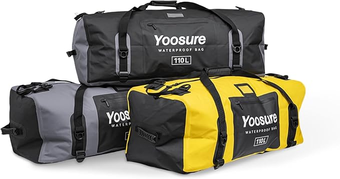 - Waterproof & Sandproof - YOOSURE waterproof duffel bag keeps gear bone-dry in heavy rain, submersion, or dusty trails. Crafted from thick 700D PVC with welded seams and airtight zipper featuring double-seal tech. Ideal for rafting, boating, or rugged adventures—prevents leaks even in extreme conditions. Note: Small zippered pocket is not waterproof