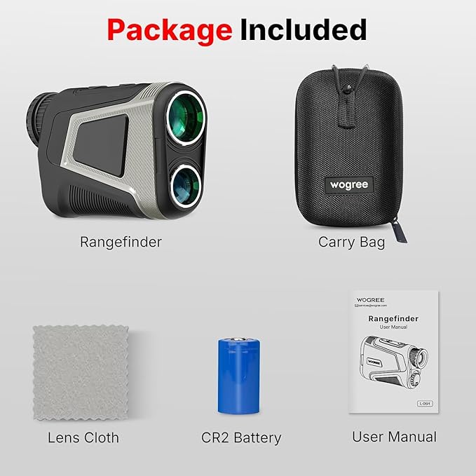 - What's in the Package: 1*1800 Yards laser rangefinder, 1*rangefinder case, 1*CR2 battery, 1*lens clean cloth, 1*user manual, a must - have tool for every passionate hunter and golfer in the tournament play.